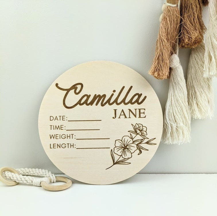 This beautiful floral custom baby birth announcement sign is the perfect way to help you capture precious newborn photos and introduce your little one to the world! Write the baby's birth stats on the blank lines and then snap a photo. It is a wonderful and creative way to include those important photos in some of the first moments/days in the hospital. When you return home with your baby you can proudly hang this sign in your baby's nursery or tuck it away in a baby box/book.