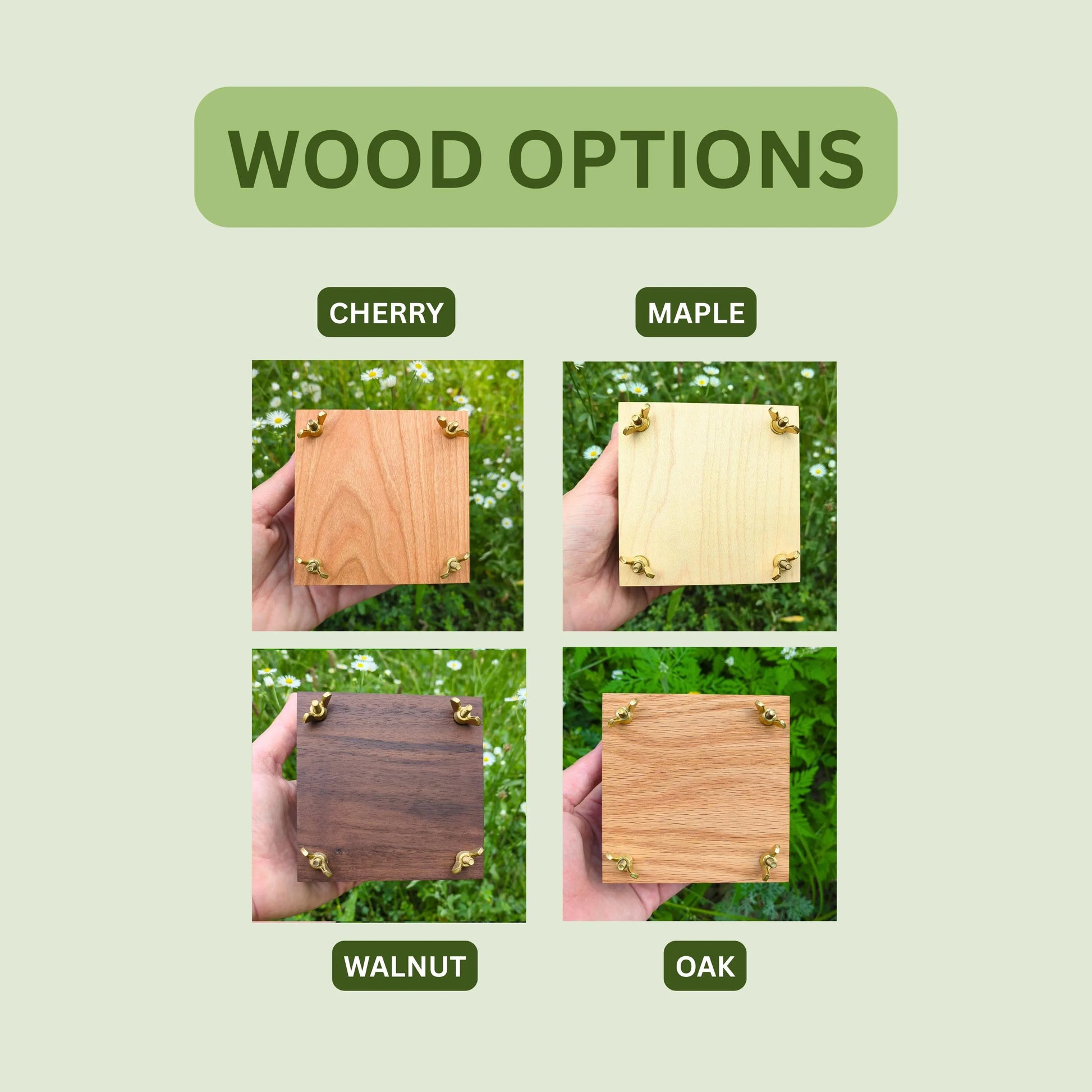 Our hardwood flower presses are made from hand-selected hardwood sourced locally here in Central Michigan. They measure 7 x 7 x 2.5 inches making them perfect for pressing multiple flowers on each sheet at once!