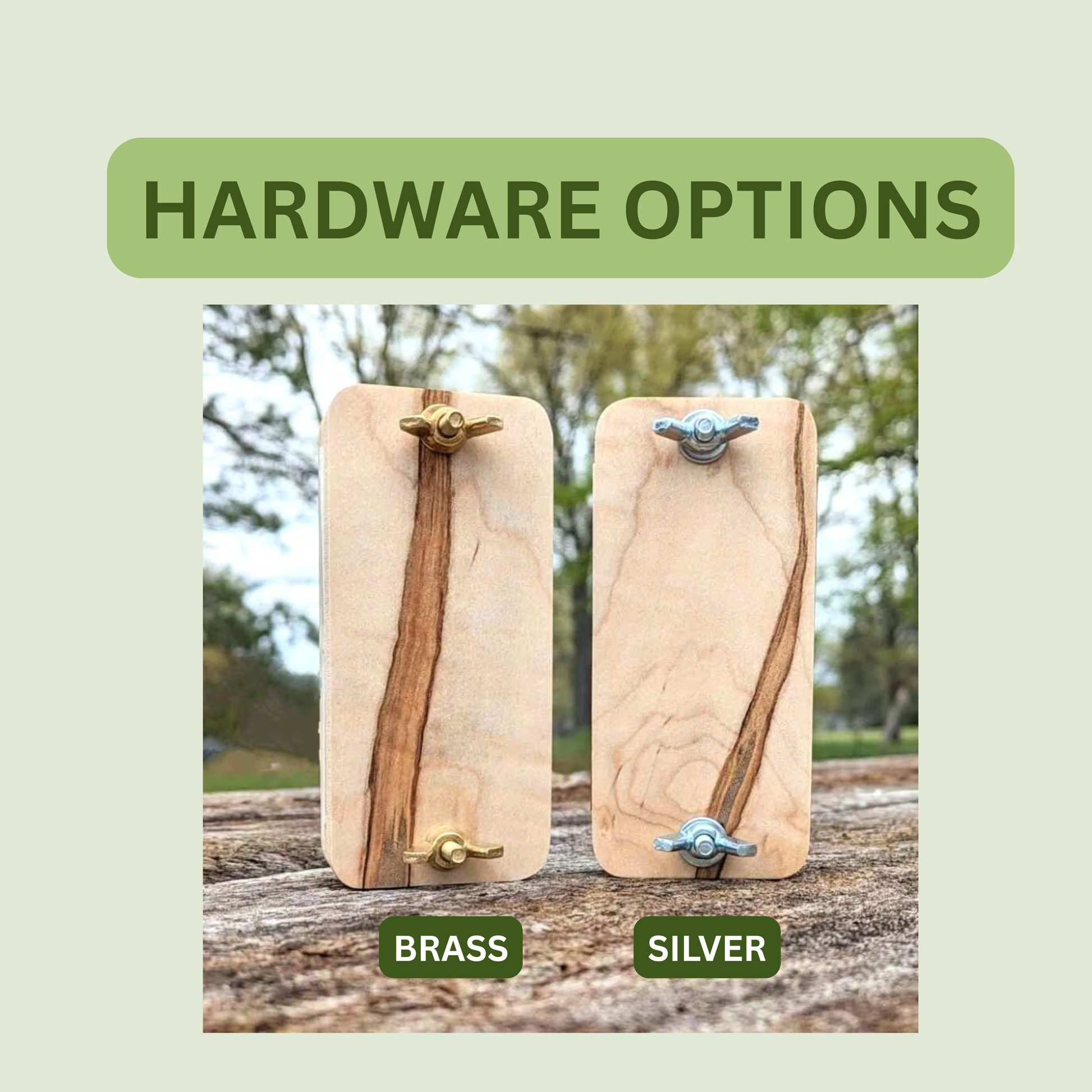 Our flower presses are made from hand-selected Ambrosia hardwood sourced locally here in Central Michigan. This press is our smallest in size measuring 2" x 4" with 1.25" bolts making them ideal for pressing 1-3 small flowers or a couple of clovers.