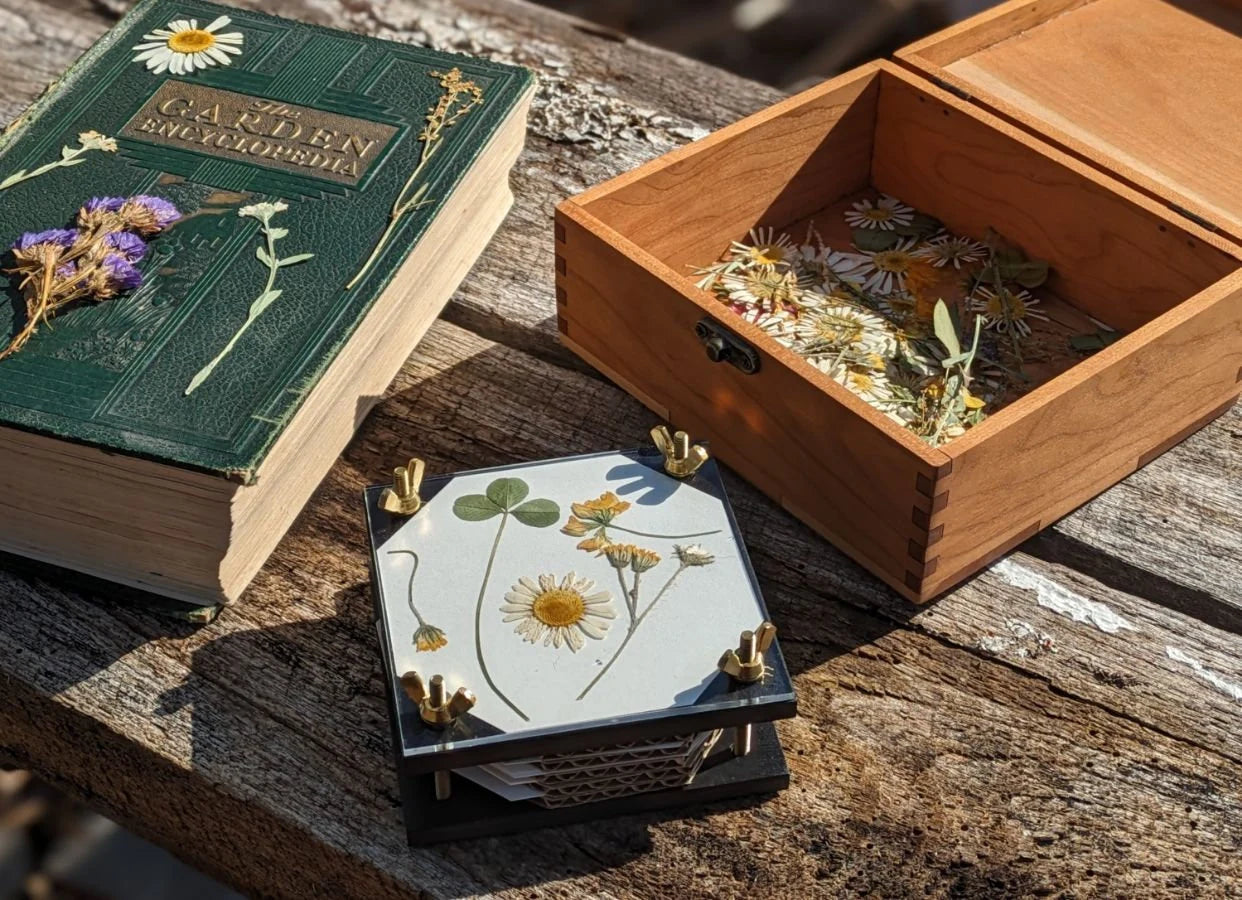 Our hardwood flower presses are made from hand-selected hardwood sourced locally here in Central Michigan. They are smaller in size measuring (mini 4.25"x4.25") (pocket 2" x 4.25") making them perfect for on the go pressing! All presses are made by hand and coated in an oil finish for preservation. Due to the handmade nature of our presses each will have slight natural variations from the presses in the listing photos.